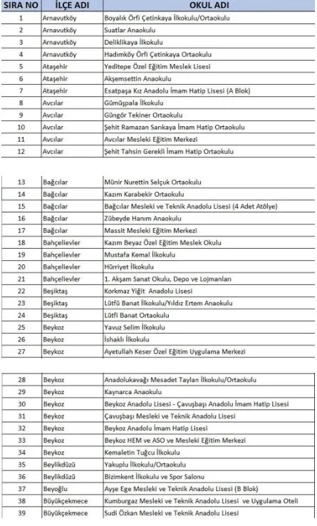 20 Şubat 2023 Pazartesi günü itibariyle öğrencilerin nakledilecek okulların listesi açıklandı. Okulların listesi şöyle: