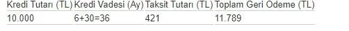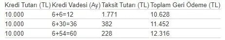 Firma katkı paylı tüketici kredisi örnek ödeme tablosu şöyle: